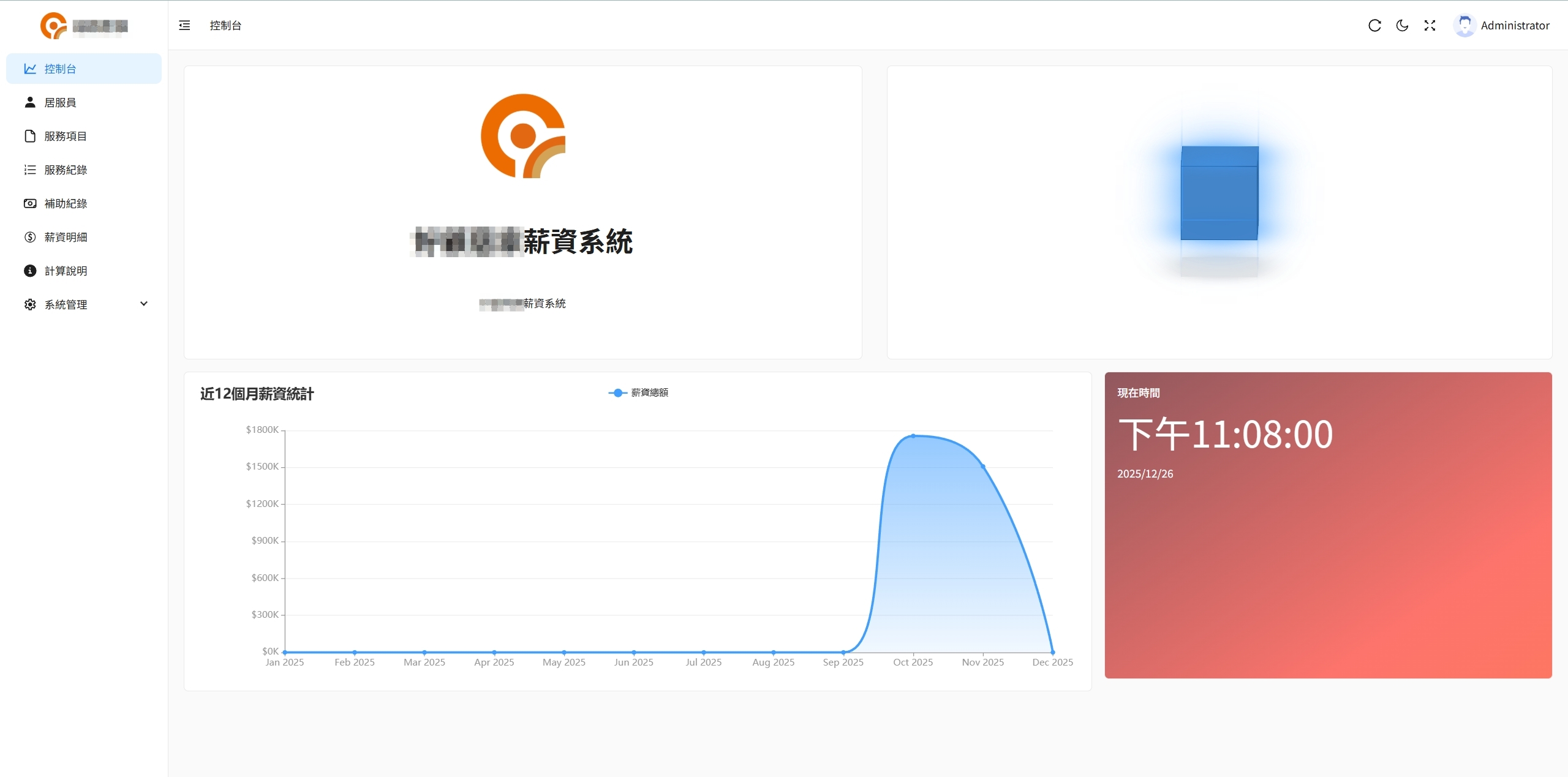 本系統為居家服務機構打造的內部薪資計算與資料整合平台。透過匯入外部 Excel(包含其他業務/排班/服務系統與政府補助資料),集中管理服務紀錄、補助紀錄、服務項目代碼,並依照機構自訂規則自動計算居服員薪資,產出薪資明細、總額彙總與對應依據,支援多角色權限控管與拆帳比例設定,提升行政效率並降低人為錯誤。